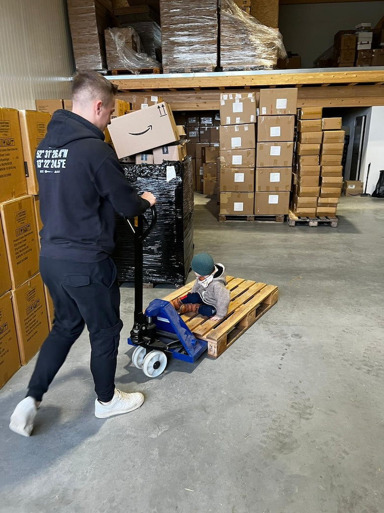 "Papa ich will auch Pakete packen" Sogar unser kleiner Sohn ist gerne im Lager zu Besuch und klebt Paketmarken